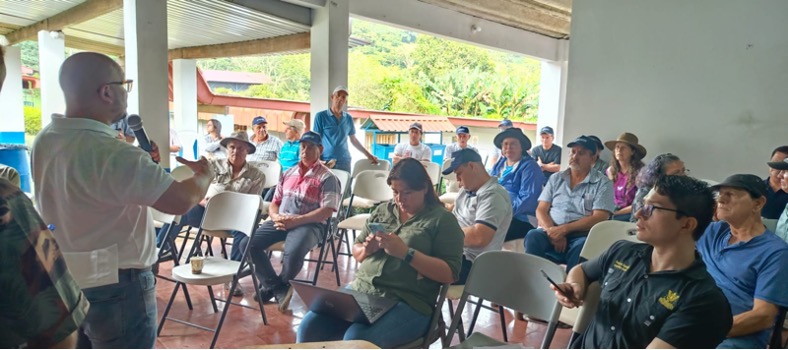 El Dr. Elías de Melo, especialista en café del CATIE, junto con estudiantes de la Maestría en Agroforestería y Agricultura Sostenible, presentaron los hallazgos de encuestas sobre los impactos del cambio climático realizadas a miembros de las cooperativas participantes. Este intercambio enriquecedor fomenta la búsqueda de soluciones prácticas y personalizadas para los desafíos del sector. Además, el Banco Popular de Palmares ofreció información sobre instrumentos financieros diseñados para fortalecer la productividad a nivel de finca.