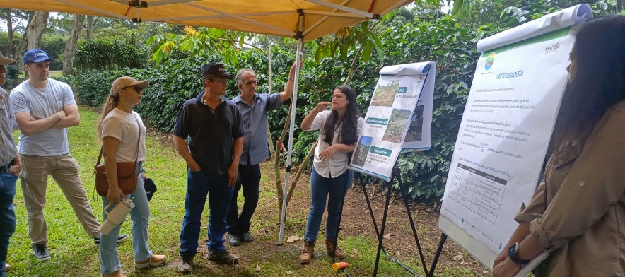 Durante la mañana, los participantes conocieron resultados de investigaciones y prácticas innovadoras tales como sistemas de poda de café —enfocados en la regeneración de las plantas y el control de plagas para mejorar la productividad—, sistemas agroforestales —que integran árboles y cultivos de café para conservar los recursos naturales, aumentar la biodiversidad y capturar carbono— y sistemas de riego por goteo —diseñados para garantizar el uso eficiente del agua, un recurso crítico frente al cambio climático—.